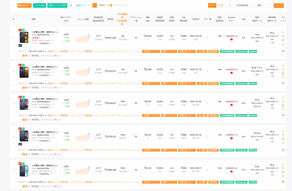 ニッチ市場が見つかったら、実際にどのような商品が売れているのかを詳細に分析します。