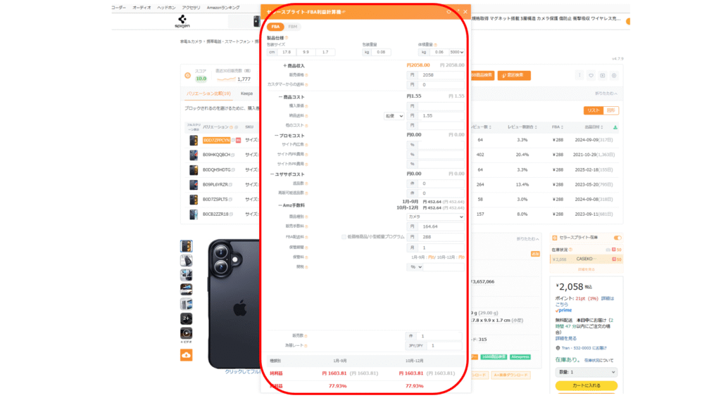 商品アイデアが見つかっても、利益が出なければ意味がありません。SellerSpriteを使って収益性を厳密に計算します。