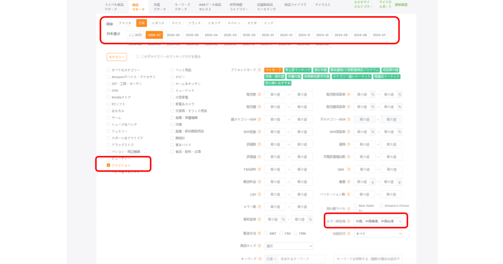 それでは実際に、セラースプライトの「商品リサーチ」機能を使って、商品選定のプロセスを見ていきましょう。