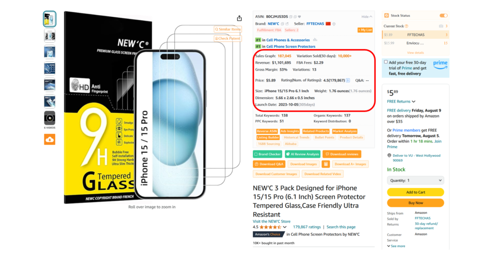 - 機能: 高度な市場分析、詳細なレビュー分析、複数アカウント管理、カスタムレポート。