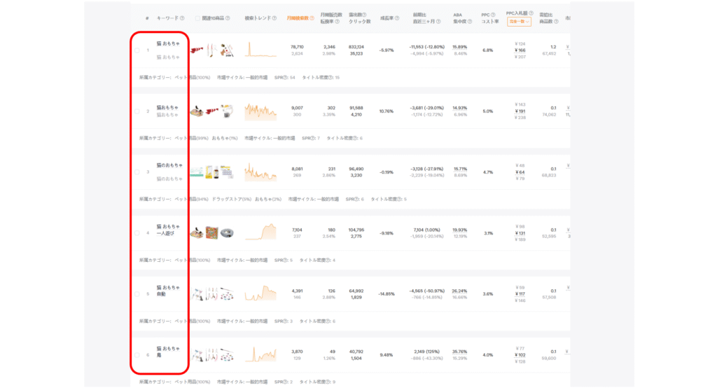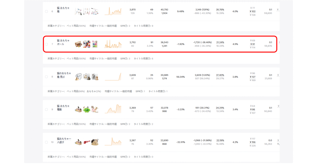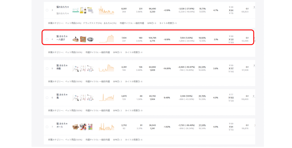 - 「猫おもちゃ」は競合が多いが需要も高い。