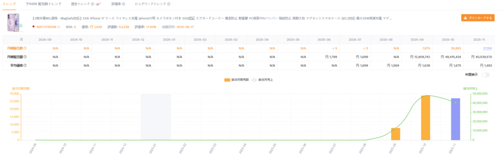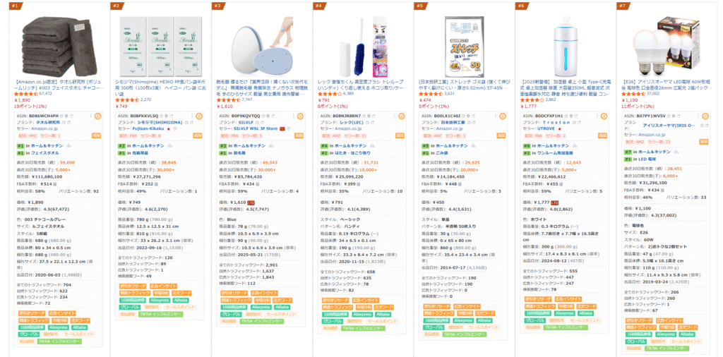 SellerSpriteは、Amazonの膨大なビッグデータをもとに、市場規模・競合の売上・レビュー動向・検索トレンド・キーワード分析などを数値化して見える化してくれます。
